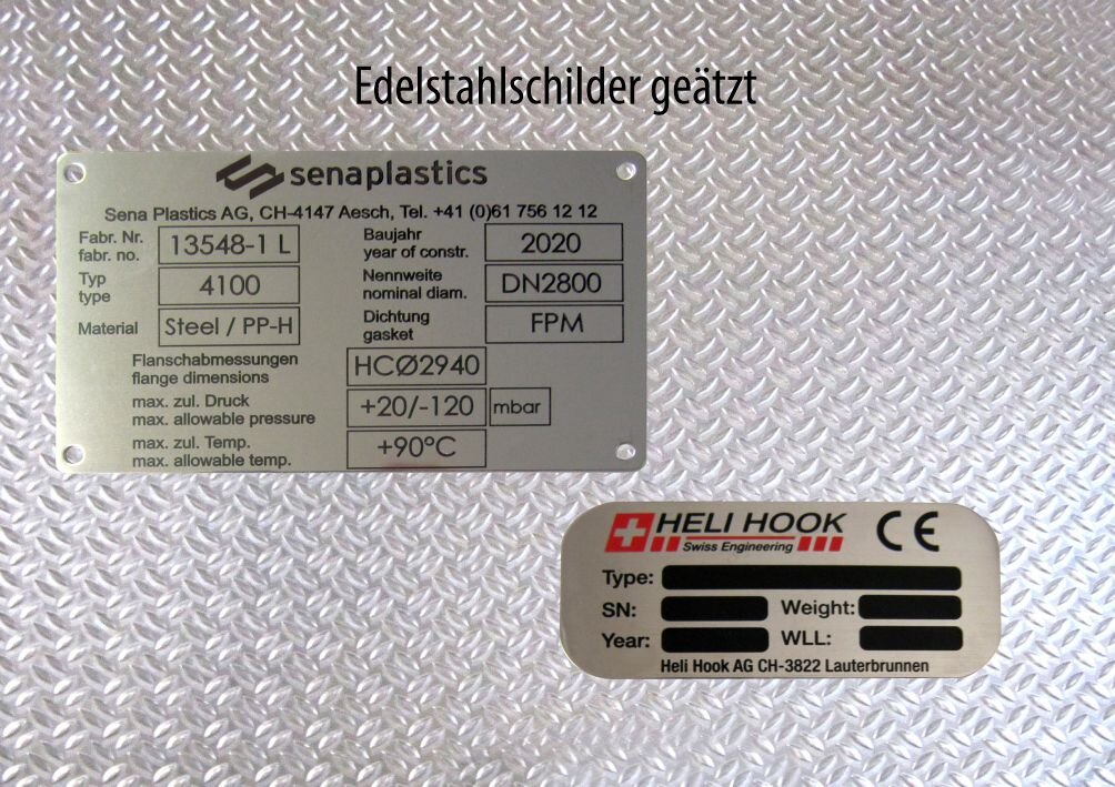 Ein Edelstahl Schild ist hochwertig, extrem Hitzebeständig, gegen viele Chemikalien resistent und sehr beständig. Mit modernster Lasertechnik bringen wir Ihren Text/Logo auf die Schilder oder ätzen Ihre Informationen in die Schilder und legen Sie farbig aus, ganz nach Ihren Vorgaben. Teilen Sie uns mit wo Sie Ihre Schilder einsetzen möchten und wie viele Schilder Sie benötigen, wie gross und wie dick Sie diese wünschen, ob spitze oder abgerundete Ecken und wie manche Farben in Ihrem Druckbild enthalten sind. Oder Sie senden uns Ihre Skizze oder Bild mit.